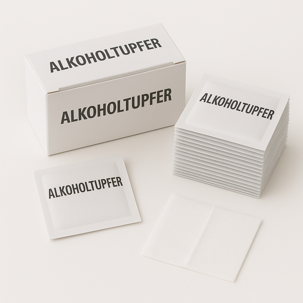 Praktische Alkoholtupfer zur schnellen Desinfektion der Haut vor der Blutentnahme.