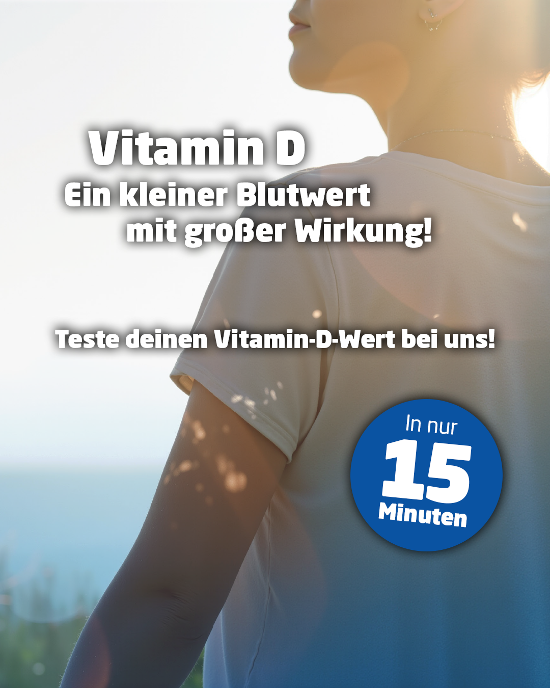 Vitamin D spielt eine Rolle für Immunsystem, Muskeln und dein allgemeines Wohlbefinden.Mit unserer professionellen Vitamin-D-Messung bekommst du schnell Klarheit über deinen aktuellen Status – in ca. 15 Minuten liegt dein Ergebnis vor.