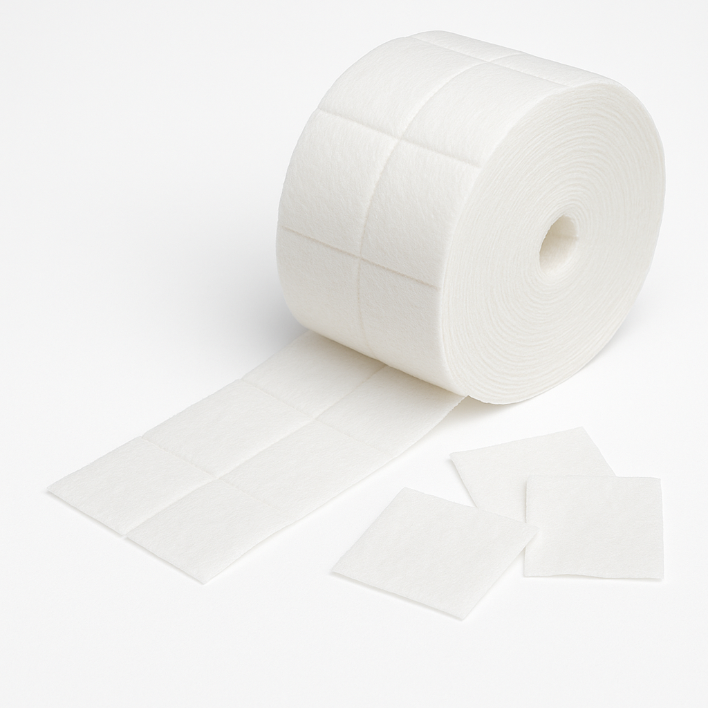 Weiche Zellstofftupfer auf Rolle, ideal zur Blutstillung nach der Lanzettenanwendung.